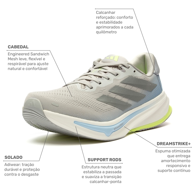 - Sobre o produto - O Tênis adidas Supernova Rise 2 Masculino é a escolha ideal para corredores que buscam alta performance, conforto e durabilidade. Seu cabedal em mesh com camada dupla de malha elástica proporciona respirabilidade, ajuste preciso e flexibilidade para movimentos naturais. - A entressola em EVA garante amortecimento leve e responsivo, reduzindo impactos e oferecendo mais conforto durante treinos intensos e provas desafiadoras. - Com a avançada tecnologia Dreamstrike+, o Tênis adidas Supernova Rise 2 Masculino entrega retorno de energia eficiente e estabilidade, ajudando a manter a cadência e a potência a cada passada. - O solado Adiwear oferece tração superior e alta resistência ao desgaste, garantindo aderência segura em diferentes tipos de terreno, ideal para quem busca segurança e durabilidade em corridas de alto rendimento. - Seja para treinos ou competições, esse modelo combina inovação e design moderno para impulsionar sua corrida com máximo desempenho. - Adquira o seu agora e supere seus limites! Centauro: Seu parceiro ideal para o esporte! - ref: 993378