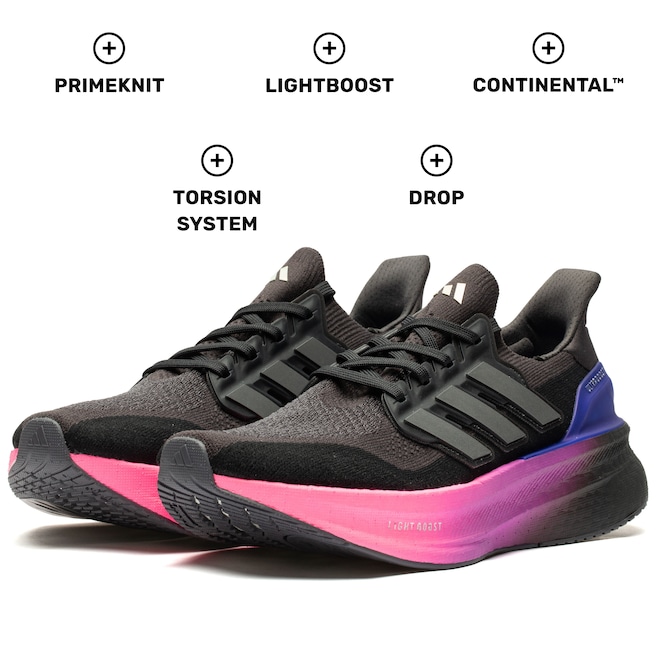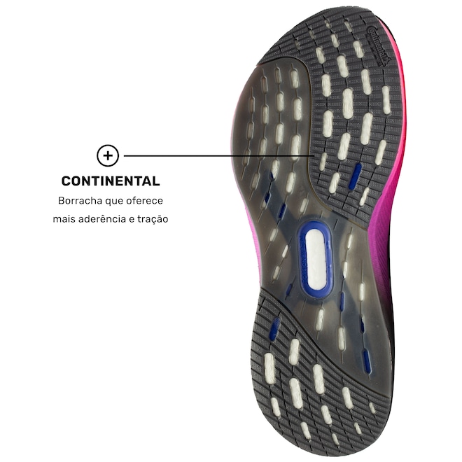 Já a borracha Continental oferece máxima aderência e tração, mesmo em condições climáticas desafiadoras, fazendo do Ultraboost 5 a escolha perfeita para quem busca performance e conforto em distâncias de até 42 km.
