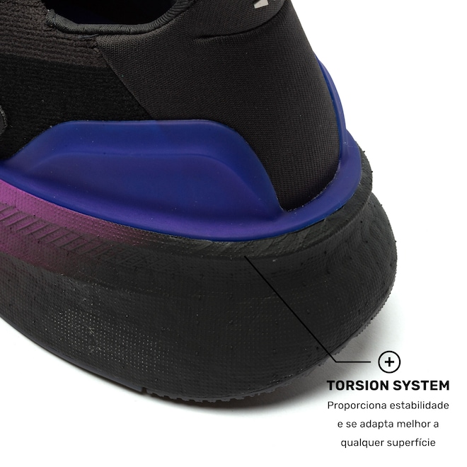 O Torsion System garante suporte no centro do pé, permitindo que a parte dianteira e traseira se movam de forma independente, proporcionando mais estabilidade e melhor adaptação a qualquer tipo de superfície.