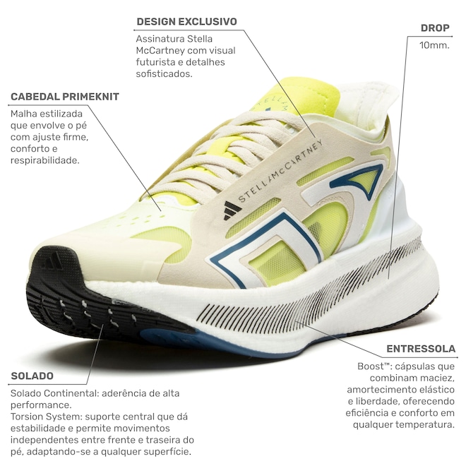 Estilo icônico e performance de alto nível definem o Tênis adidas Ultraboost 5 Stella McCartney Unissex, um modelo criado para quem não abre mão de inovação e sofisticação na hora de correr ou treinar.