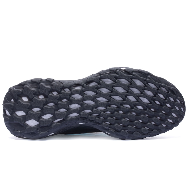 O cabedal (parte superior do tênis) é em malha leve e respirável com lingueta integrada que oferece mais estabilidade e firmeza durante a marcha.