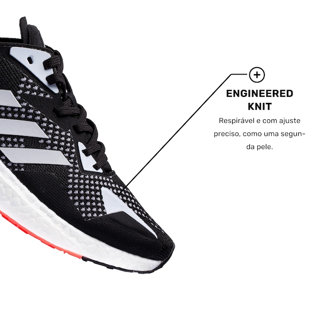 ENGINEERED KNIT: Malha leve e respirável que abraça o pé como uma segunda leve para ajuste preciso.BOOST™: Energia única de cápsulas que apresentam uma mágica combinação de benefícios funcionais, como maciez, amortecimento elástico e sensação de liberdade.