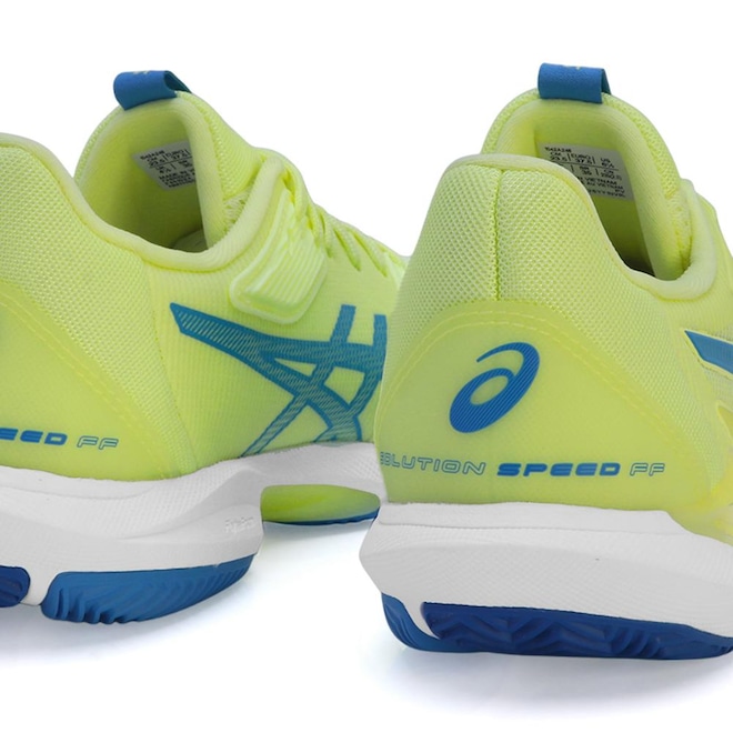 - Detalhamento: Ajuste em cadarço convencional, lingueta em mesh com acabamento e interno em tecido acolchoado proporcionando conforto, logo Asics na lingueta e laterais, biqueira e calcanhar reforçados, placa antitorção no médio pé, escrita Solution Speed FF na parte de trás;