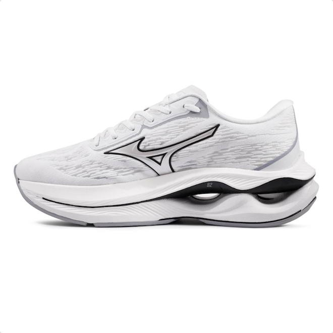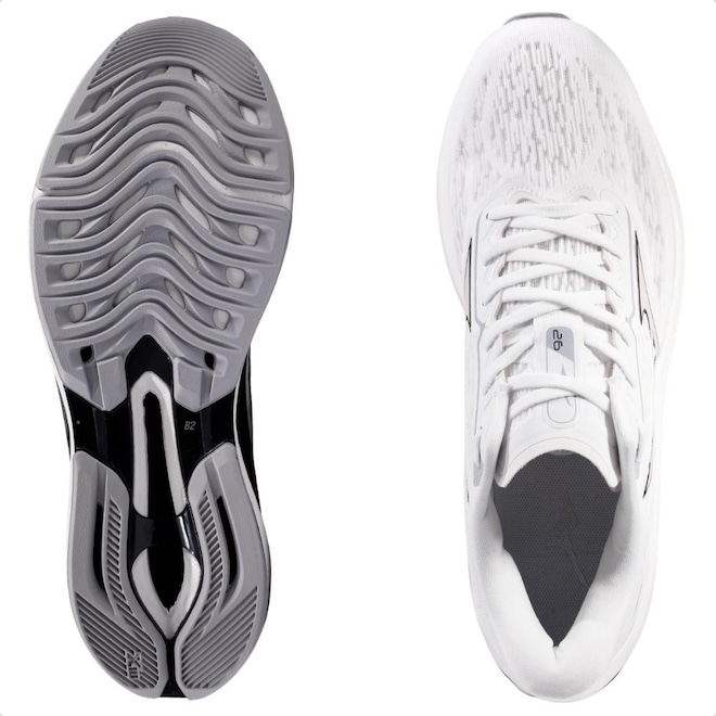 O solado conta com a durável borracha X10, que assegura maior tração e resistência à abrasão, prolongando a vida útil do calçado mesmo em superfícies mais ásperas. Já a entressola com a tecnologia Mizuno Enerzy confere um retorno de energia eficiente, promovendo uma pisada mais suave e responsiva.