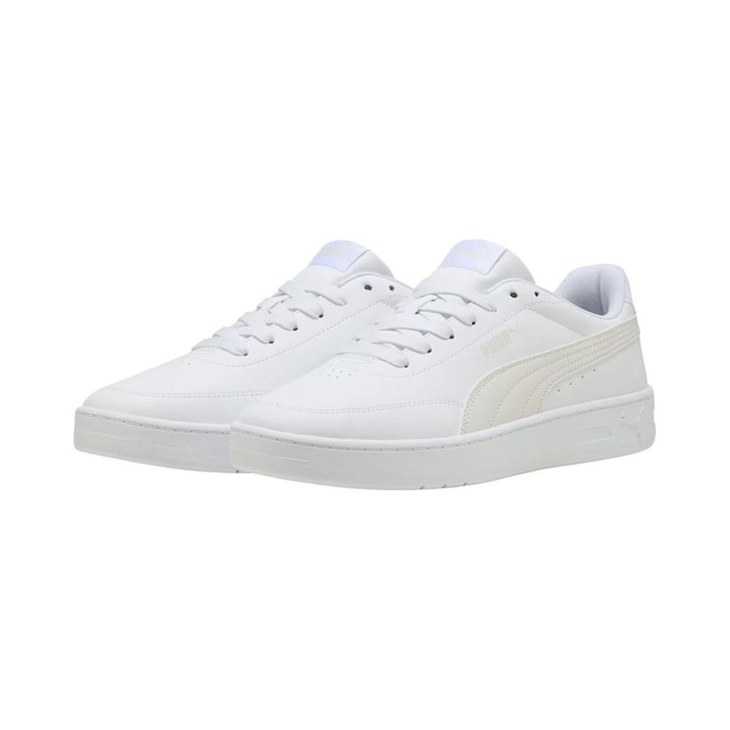 Nome: Tênis Puma Court Classic Clean Gênero: UnissexIndicado para: Uso casual Cabedal: Sintético Forro: Têxtil Lingueta: Fina e macia Palmilha: Removível, com tecnologia SoftFoam+ Solado: Borracha Fechamento: Cadarço Marca: Puma