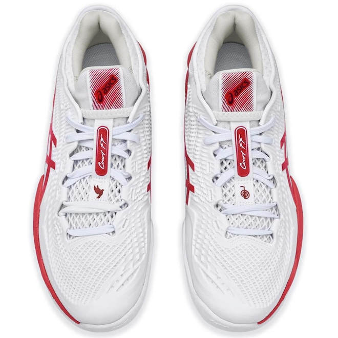 Descrição do Tênis Asics Court FF 3 Novak - Quadra Rápida - Branco e Vermelho