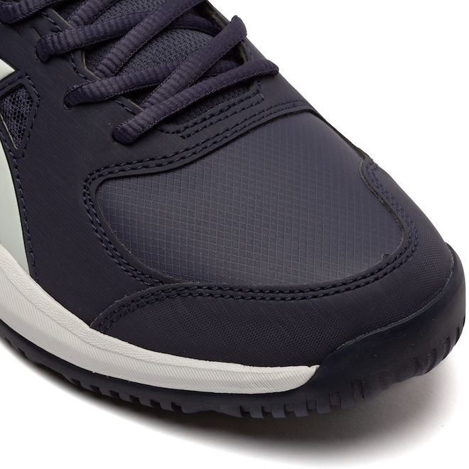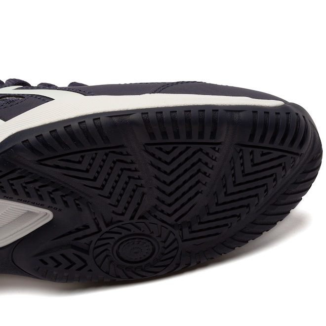 Seu cabedal sintético proporciona suporte e durabilidade, enquanto a borracha non-marking no solado garante tração sem deixar marcas na superfície.