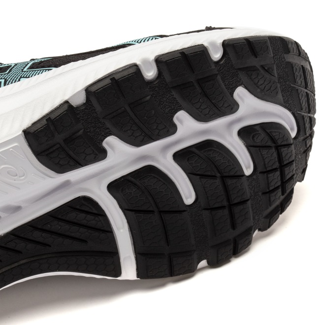 O Sistema de Amortecimento em Gel® absorve o impacto estrategicamente, enquanto a espuma de baixa densidade Amplifoam, da entressola, suaviza o amortecimento.
