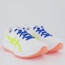 Tecnologias FF Blast Plus: Uma tecnologia de espuma da marca ASICS que proporciona um amortecimento leve e responsivo. OrthoLite X30: Uma palmilha removível que proporciona estabilidade e conforto ao caminhar. PureGEL™: Uma tecnologia da ASICS que proporciona amortecimento e absorção de impactos. Composição cabedal (parte superior): Têxtil com sobreposição em sintético Forro: Material têxtil com acolchoamento no calcanhar Palmilha: Em EVA e removível; facilita a higienização Indicado para: Corrida e Treino Solado: Borracha antiderrapante, colado Altura da Sola: 5 cm Lingueta: Fina e flexível Cor predominante: Branca Gênero: Feminino Origem: Importada Ajuste: Cadarço Peso aproximado: 450g o par nº 37