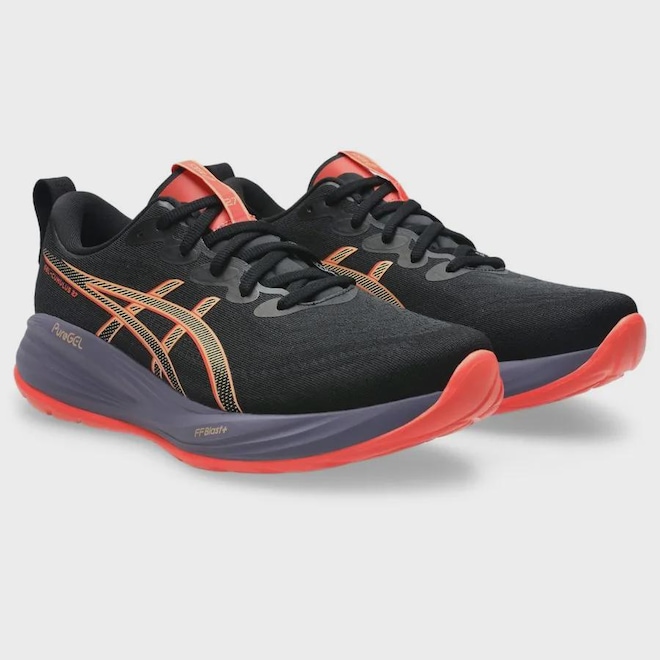 A entressola em EVA com a avançada tecnologia FF BLAST+™ ECO proporciona amortecimento responsivo e transições suaves, reduzindo o impacto em cada passada. Já o PureGEL™ oferece absorção extra de choques, tornando a corrida mais fluida e confortável.
