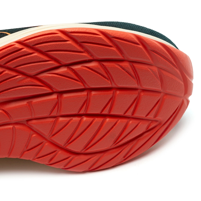 Para maior tração e durabilidade, o solado emborrachado entrega aderência segura em diferentes tipos de superfície, seja no asfalto ou em treinos leves de trilha.