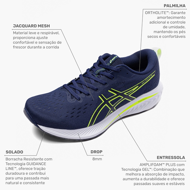 Descubra o poder de cada passo com o Tênis ASICS Gel-Excite 10 Masculino! Ideal para corridas e treinos, este tênis oferece o suporte e o conforto necessários para alcançar seus objetivos.
