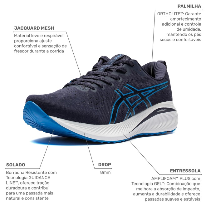 Descubra o poder de cada passo com o Tênis ASICS Gel-Excite 10 Masculino! Ideal para corridas e treinos, este tênis oferece o suporte e o conforto necessários para alcançar seus objetivos.
