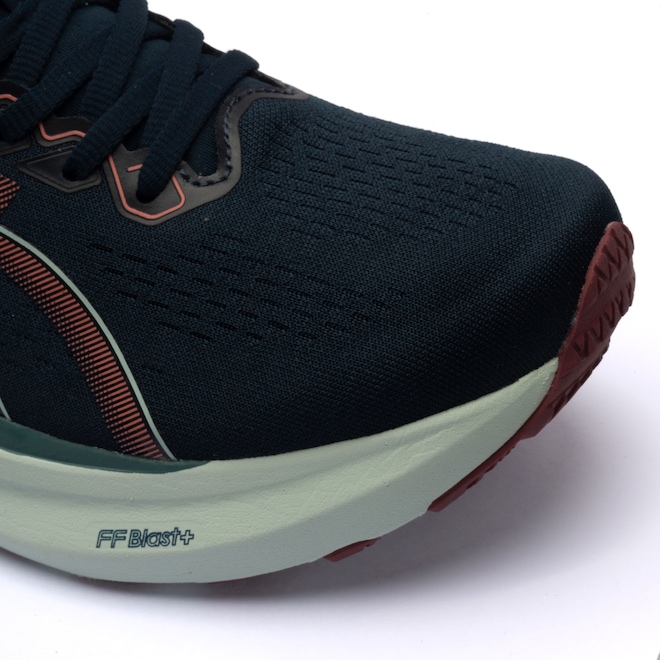 Já a entressola em EVA apresenta as tecnologias FF Blast™ Plus Eco, PureGel e 4D Guidance System proporcionando uma combinação única de leveza e resposta, permitindo um impulso energizado a cada passada.