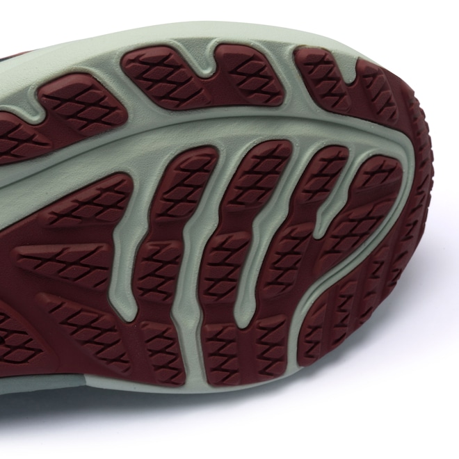 As tecnologias do solado em borracha durável AHAR PLUS e AHAR+ que juntas oferecem tração multidirecional, proporcionando aderência excepcional em diferentes superfícies, seja na rua ou na esteira.