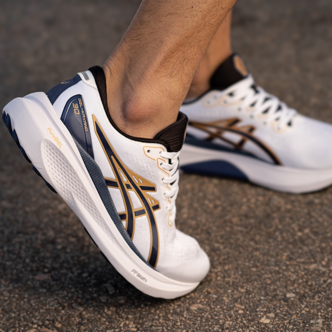 A família Kayano cresceu com sua nova versão para conquistar você corredor. Conhecido por sua estabilidade e amortecimento premium, combinando tecnologia avançada e durabilidade.