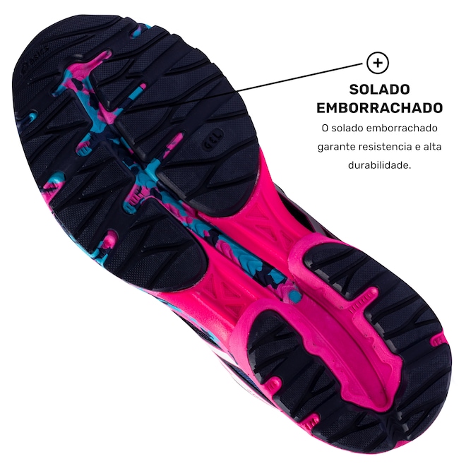 Já a entressola é diferenciada com um visual colorido e descolado, otimizado com a melhor tecnologia que a marca oferece na atualidade, Sistema de Amortecimento em Gel base de silicone, colocado em locais estratégicos para absorção de impacto, garantindo uma corrida confortável, estável e segura, isso significa mais equilíbrio na postura e menos desperdício de energia.