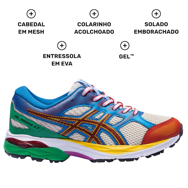Asics sempre surpreendendo você com um tênis versátil podendo ser utilizado na academia, caminhada, corridas leves ou uso diário.