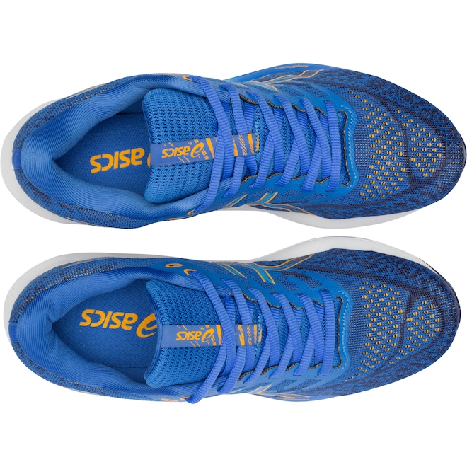 A entressola com tecnologia AMPLIFOAM™ PLUS eleva a experiência de amortecimento, sendo mais leve e eficiente do que o EVA tradicional, enquanto a icônica tecnologia GEL™, posicionada estrategicamente no calcanhar e na articulação do dedão, absorve os impactos e protege o corpo, reduzindo a fadiga muscular e permitindo corridas mais longas e seguras.