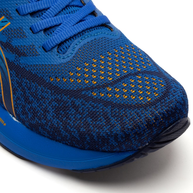 O cabedal em Jacquard Mesh proporciona leveza e alta respirabilidade, reduzindo a necessidade de costuras adicionais para garantir máximo conforto e evitar irritações durante o uso.