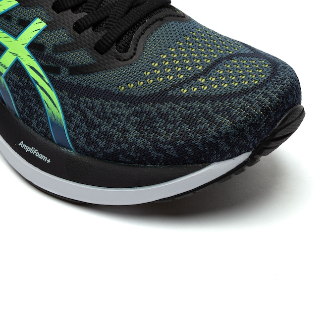 A entressola com tecnologia AMPLIFOAM™ PLUS eleva a experiência de amortecimento, sendo mais leve e eficiente do que o EVA tradicional, enquanto a icônica tecnologia GEL™, posicionada estrategicamente no calcanhar e na articulação do dedão, absorve os impactos e protege o corpo, reduzindo a fadiga muscular e permitindo corridas mais longas e seguras.