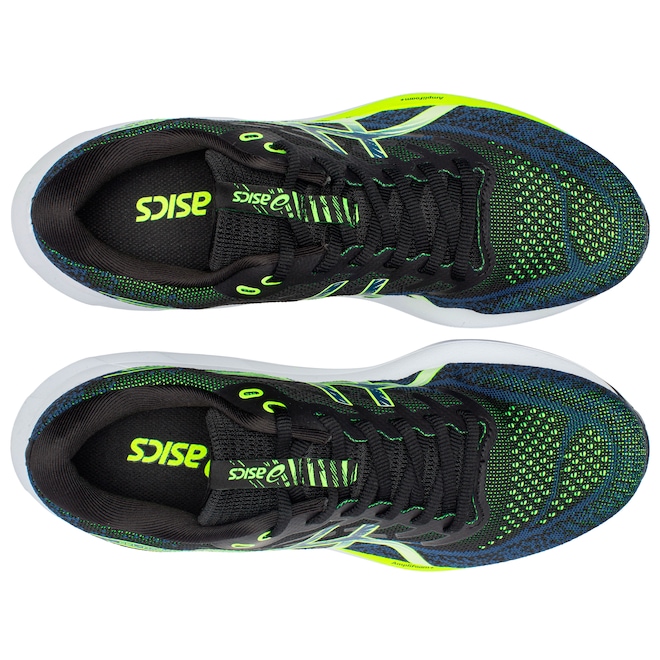 A entressola com tecnologia AMPLIFOAM™ PLUS eleva a experiência de amortecimento, sendo mais leve e eficiente do que o EVA tradicional, enquanto a icônica tecnologia GEL™, posicionada estrategicamente no calcanhar e na articulação do dedão, absorve os impactos e protege o corpo, reduzindo a fadiga muscular e permitindo corridas mais longas e seguras.