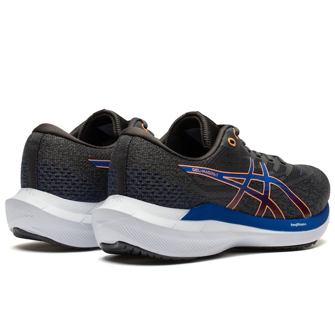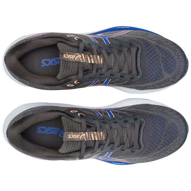 A entressola com tecnologia AMPLIFOAM™ PLUS eleva a experiência de amortecimento, sendo mais leve e eficiente do que o EVA tradicional, enquanto a icônica tecnologia GEL™, posicionada estrategicamente no calcanhar e na articulação do dedão, absorve os impactos e protege o corpo, reduzindo a fadiga muscular e permitindo corridas mais longas e seguras.