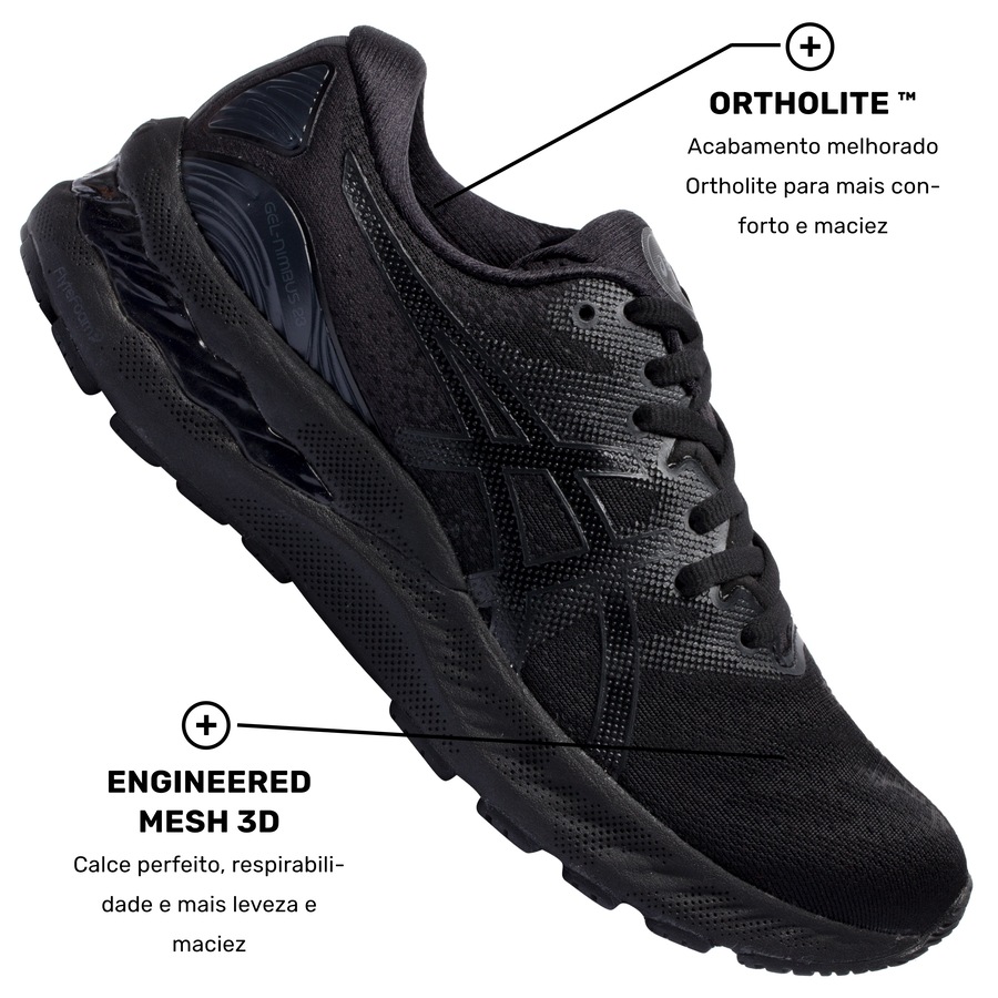 O Asics Gel-Nimbus 23 com seu design reformulado chega para conquistar você corredora de longa ou curta distância. É amortecimento que você quer?Engineered Mesh: Malha que faz uso de perfurações firmes, porém maleáveis, para um cabedal ainda mais flexível e respirável.AHAR® (High Abrasion Resistant Rubber): Tecnologia que integra o sistema Trusstic, placa anti-torção e a tecnologia Guidance Line. Com uma construção melhorada, proporciona passadas mais estáveis, mantendo a estrutura da entressola para um melhor direcionamento da passada e performance do corredor.Sistema de Amortecimento em Gel: Gel com base de silicone, colocado em locais estratégicos para absorção de impacto.FlyteFoam™: Mais leve que o EVA tradicional, combina leveza, amortecimento e resposta rápida aos movimentos.Flytefoam™ Propel Formulação patenteada extremamente resiliente, leve e confortável para garantir melhor retorno de energia, durabilidade e performance.Trusstic Gender-specific: Proporciona maior estabilidade diferenciada por gênero e evita o movimento.Ortholite: Garante maior conforto, respirabilidade e um sistema antimicrobial.Encare seus desafios mais difíceis, com esse tênis para corrida Asics. Corra, ele está te esperando no Centauro!Entressola EVA com inserção de Gel Solado Borracha Material do Forro Têxtil
