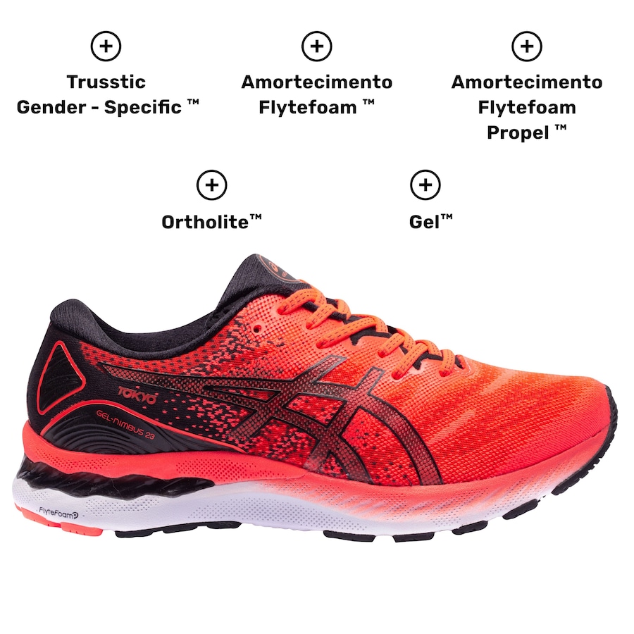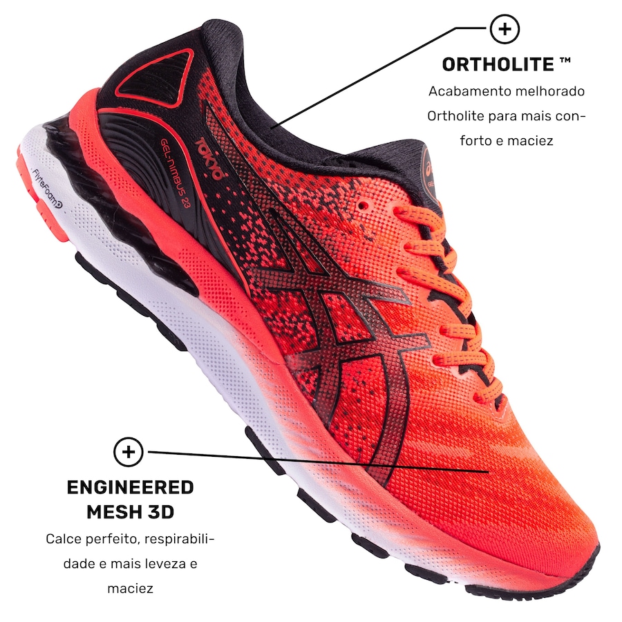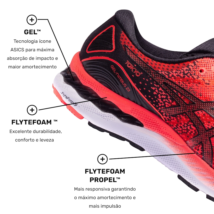 O clássico Gel-Nimbus 23 que você conhece agora com a versão limitada para Tokyo 2020.Projetado com o DNA do Nimbus 23, esta versão renovada e mais responsiva possui diversas tecnologias que fazem com que seus treinos de rodagem fiquem super confortáveis. Mais que um tênis de corrida é um aliado diário para você conquistar aquele “pace” tão desejado.Engineered Mesh: Malha que faz uso de perfurações firmes, porém maleáveis, para um cabedal ainda mais flexível e respirável.AHAR® (High Abrasion Resistant Rubber): Tecnologia que integra o sistema Trusstic, placa anti-torção e a tecnologia Guidance Line. Com uma construção melhorada, proporciona passadas mais estáveis, mantendo a estrutura da entressola para um melhor direcionamento da passada e performance do corredor.Sistema de Amortecimento em Gel: Gel com base de silicone, colocado em locais estratégicos para absorção de impacto.FlyteFoam™: Mais leve que o EVA tradicional, combina leveza, amortecimento e resposta rápida aos movimentos.Flytefoam™ Propel: Formulação patenteada extremamente resiliente, leve e confortável para garantir melhor retorno de energia, durabilidade e performance.Trusstic Gender-specific: Proporciona maior estabilidade diferenciada por gênero e evita o movimento.Ortholite: Garante maior conforto, respirabilidade e um sistema antimicrobial.Quer saber onde encontrar o melhor tênis de corrida? Corre até a Centauro e adquira o seu!