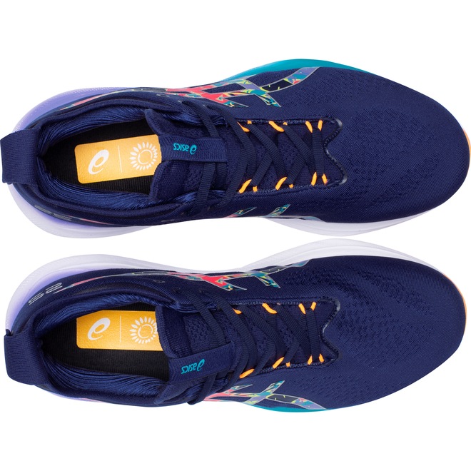 Já sua entressola em EVA concentra-se FlyteFoam® Blast e PureGel são combinações de tecnologias que fazem com que o tênis ofereça um ótimo amortecimento e aumento de agilidade , dando uma sensação de resposta rápida.