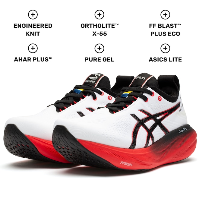 Reviva a lenda com o tênis ASICS Gel-Nimbus 25 Senna para os apaixonados por velocidade, adrenalina e inovação, uma homenagem à lenda que desafiou todos os limites.