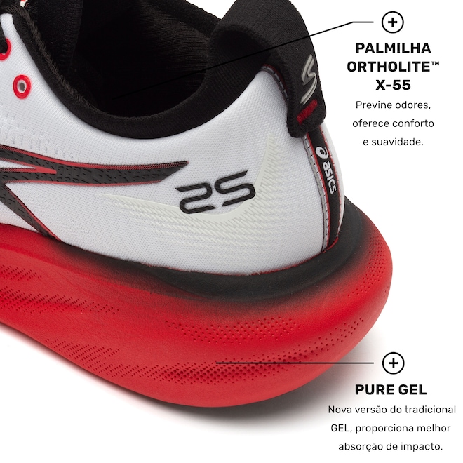 Academia/EsteiraTipo de Amarração Cadarço Estampa do Logo Estampado no Cabedal Detalhes Refletivos Sim Garantia do Fornecedor Contra Defeito de Fabricação Conteúdo da Embalagem 1 Par SAC do Fornecedor ASICS: 0800-722-7427 ou através do e-mail fale.conosco@asics.com Pisada Neutra