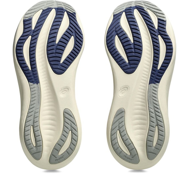 A experiência única em amortecimento você encontra no GEL-NIMBUS™ 27 fazendo o corredor aterrisar nas nuvens. Este design foi renovado para ajudar a criar uma experiência de corrida com mais conforto. O cabedal feito em jacquard mesh envolve confortavelmente o pé trazendo mais respirabilidade. Além disso, a língueta e o forro em knit ajuda a proporcionar uma sensação de mais maciez e de suporte aos pés. O FF BLAST™ PLUS ECO, cria uma experiência de amortecimento mais leve e suave. Por último, o solado de borracha HYBRID ASICSGRIP™ garante melhor tração e durabilidade avançada. Cabedal em engineered jacquard mesh Abraça os pés garantindo mais maciez e conforto Pelo menos 75% do material principal do cabedal é feito com materiais reciclados para reduzir desperdícios e emissões de carbono A palmilha é confeccionada com um processo de tingimento que reduz o uso de água em aproximadamente 33% e as emissões de carbono em aproximadamente 45% se comparada às tecnologias de tingimento convencional Tecnologia PureGEL™ Proporciona amortecimento leve e aterrissagens mais suaves O amortecimento FF BLAST™ PLUS ECO é feito com aproximadamente 24% de material de base biológica e proporciona conforto semelhante ao pisar nas nuvens Palmilha OrthoLite™ X-55 Melhora o conforto Detalhes refletivos Projetado para ajudar a melhorar a visibilidade HYBRID ASICSGRIP™ no solado Ajuda a criar melhor tração, maior suavidade e durabilidade avançada