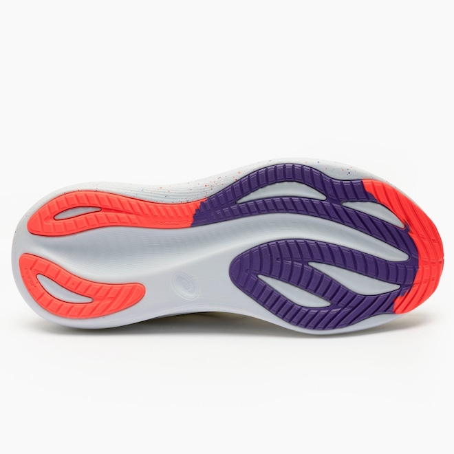 PureGEL: Esta nova versao da tecnologia GEL, cerca de 65% mais macia que a versao padrao, esta estrategicamente posicionada no calcanhar. Ela absorve o impacto de forma suave e eficiente, protegendo as articulacoes e contribuindo para uma transicao de pisada mais fluida.