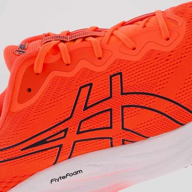 Seu cabedal em mesh proporciona respirabilidade e leveza, enquanto a entressola em EVA e as tecnologias de amortecimento Gel e FlyteFoam garantem uma corrida suave e responsiva.