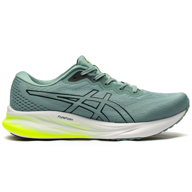 Seu cabedal em mesh proporciona respirabilidade e leveza, enquanto a entressola em EVA e as tecnologias de amortecimento Gel e FlyteFoam garantem uma corrida suave e responsiva.