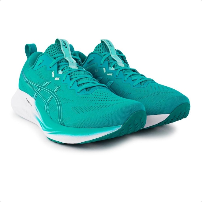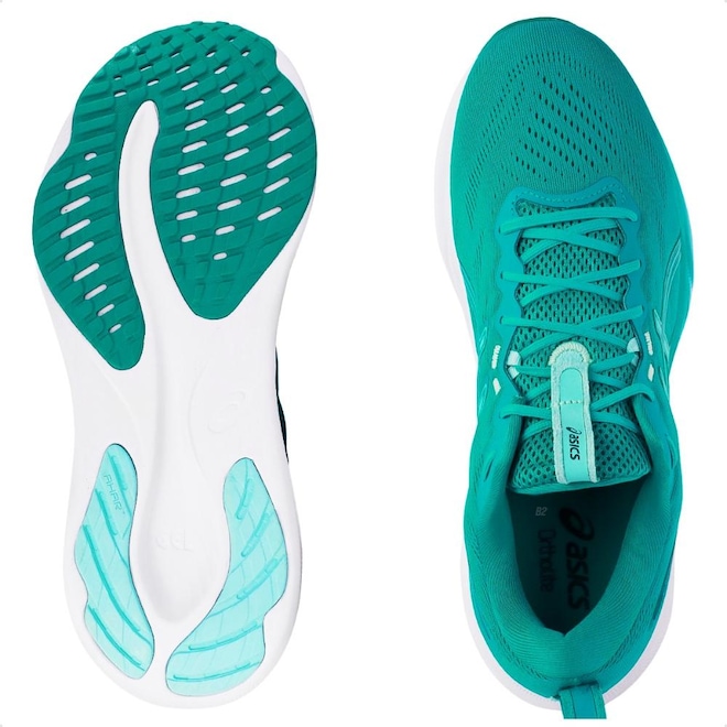 Amortecimento FLYTEFOAM é combinado com a tecnologia GEL para produzir uma sensação suave sob os pés, proporcionam conforto e proteção contra impactos, reduzindo o cansaço durante a corrida.
