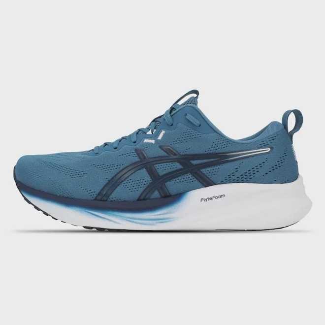 O tênis GEL-PULSE™ 16 cria o conforto que necessário para você manter a sua mente focada no treino. Seja correndo ou na academia, este tênis oferece bom amortecimento para uma sensação suave. Confeccionado com uma malha projetada para melhorar o fluxo de ar e manter seus pés frescos. O tênis também envolve seu pé com um ajuste macio e confortável.O amortecimento FLYTEFOAM™ é combinado com a tecnologia GEL™ para produzir uma sensação suave sob os pés. Cabedal de malha projetada Melhora a respirabilidade.Pelo menos 75% do material principal do cabedal é composto por material reciclado, ajudando a reduzir o desperdício e as emissões de carbono.Processo de tingimento em solução na palmilhaReduz o uso de água em aproximadamente 33% e as emissões de carbono em cerca de 45%, em comparação com o tingimento convencional, tornando o processo mais sustentável.Amortecimento FLYTEFOAM™ Proporciona uma sensação leve e confortável sob os pés, garantindo um excelente equilíbrio entre suavidade e suporte.Tecnologia Rearfoot GEL™ Melhora a absorção de impacto e cria uma sensação mais suave ao pisar, oferecendo maior conforto durante os movimentos.Borracha AHARPLUS™ no calcanhar aumenta a durabilidade.-