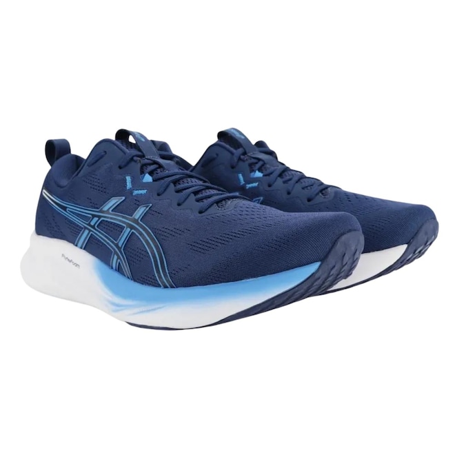 GEL™: A nossa tecnologia ícone usada pela ASICS desde 1986 protegendo o seu corpo do impacto gerado a cada passo, contribuindo para reduzir a fadiga muscular. A tecnologia em GEL™ está localizada principalmente nas áreas de maior carga no momento do impacto, na região do calcanhar e na articulação do dedão do pé. Benefícios: Absorção do impacto, proteção e conforto.