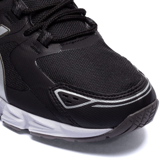 O cabedal (parte superior calçado) é em material sintético e em mesh (malha de tramas abertas), a entressola é em EVA e seu solado é emborrachado.
