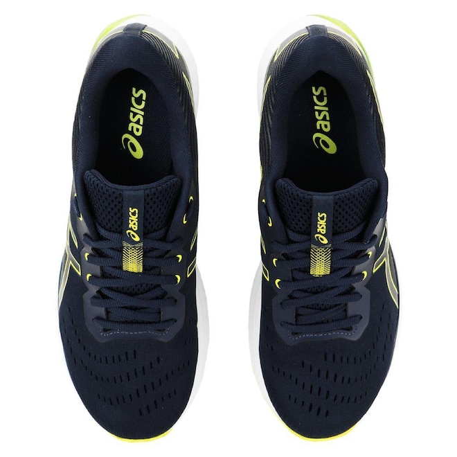 Tecnologia Gel®: Exclusiva tecnologia de amortecimento a base de GEL que proporciona máxima absorção de impacto das passadas. Composição cabedal (parte superior): Confeccionado em material têxtil Palmilha: Em EVA; forrada, moldada e removível Solado: EVA com alto nível de amortecimento Forro: Têxtil com acolchoamento reforçado Cor predominante: Lingueta: Macia e flexível Indicado para: Corrida Gênero: Masculino Origem: Nacional Ajuste: Cadarço Peso aproximado: 570g o par nº 40ref: M0ZZGS