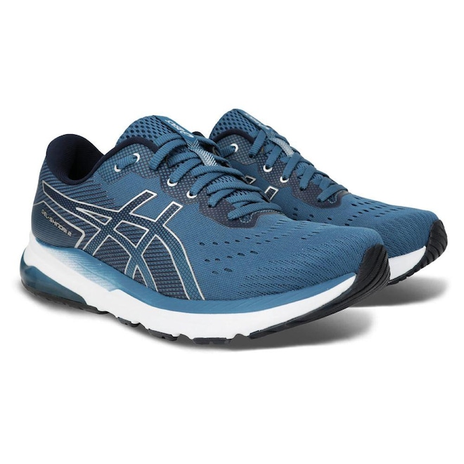 Tecnologia Gel®: Exclusiva tecnologia de amortecimento a base de GEL que proporciona máxima absorção de impacto das passadas. Composição cabedal (parte superior): Confeccionado em material têxtil Palmilha: Em EVA; forrada, moldada e removível Solado: EVA com alto nível de amortecimento Forro: Têxtil com acolchoamento reforçado Cor predominante: Lingueta: Macia e flexível Indicado para: Corrida Gênero: Masculino Origem: Nacional Ajuste: Cadarço Peso aproximado: 570g o par nº 40ref: M0ZZGS