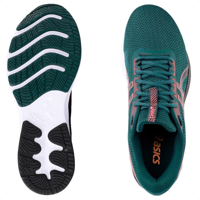 A nova geometria da tecnologia de amortecimento em GEL aprimora a absorção de impacto e melhora o equilibrio do calçado, está localizada principalmente nas áreas de maior carga no momento do impacto, na região do calcanhar e na articulação do dedão do pé