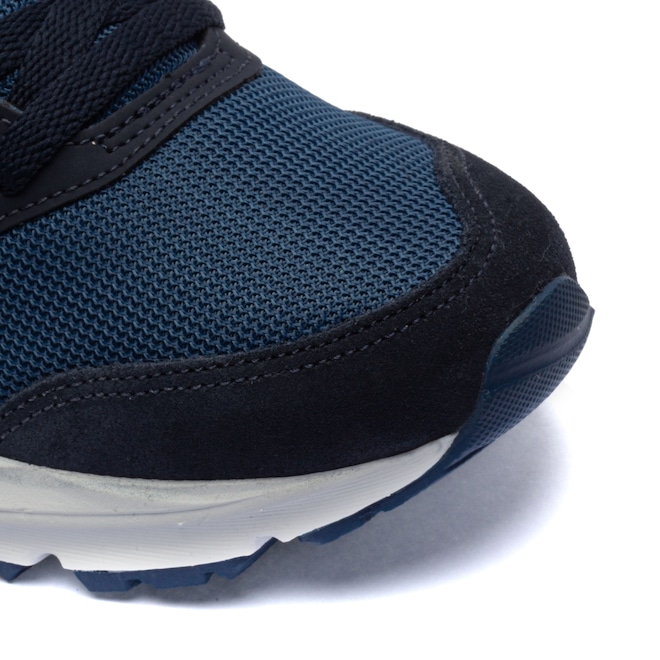 Seu cabedal (parte superior do tênis) apresenta a leveza e respirabilidade do mesh (malha em tramas abertas) com detalhes em camurça e sintético.