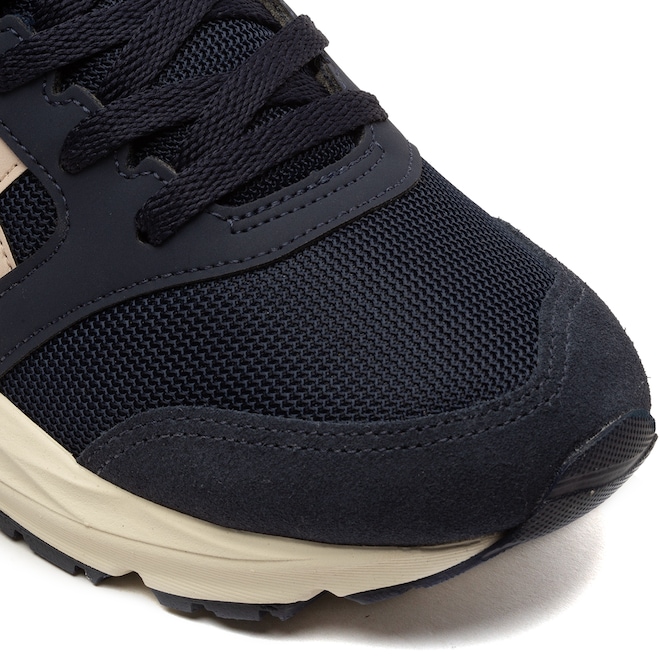 Seu cabedal (parte superior do tênis) apresenta a leveza e respirabilidade do mesh (malha em tramas abertas) com detalhes em camurça e sintético.