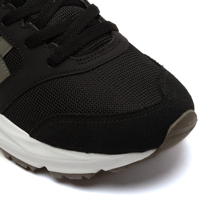 O cabedal (parte superior do calçado) é estruturado em materiais resistentes, promovendo estabilidade e firmeza aos pés.