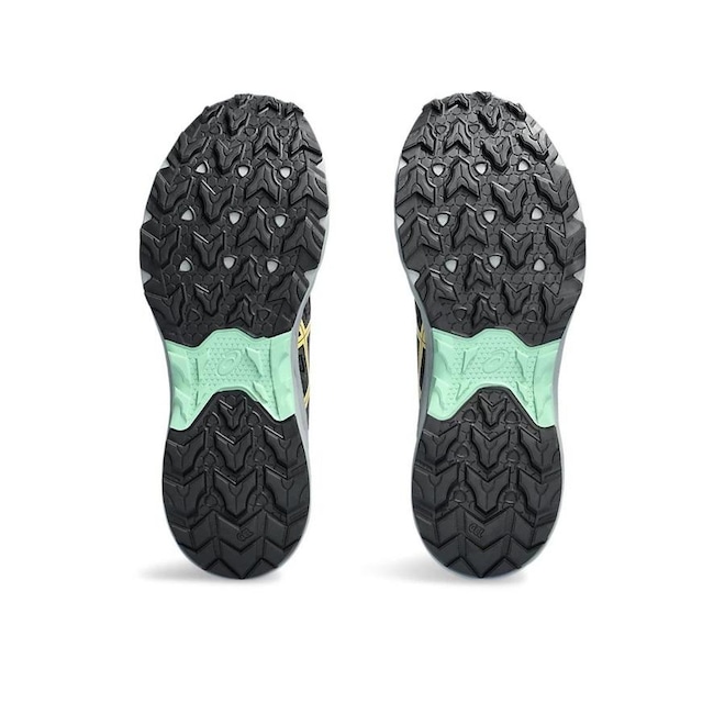 O solado tem um desenho que oferece mais tração que funciona bem em trilhas e terrenos de trilhas.