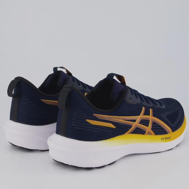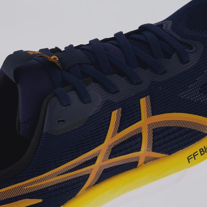 TecnologiasFF BLAST™: Espuma leve e responsiva na entressola, que oferece sensação de pisar nas nuvens com ótimo amortecimento e retorno de energia.PureGEL™: Versão aprimorada do GEL™, cerca de 65% mais macia, proporcionando absorção de impacto superior e mais suavidade nas passadas.3D GUIDANCE SYSTEM™: Sistema de estabilidade adaptável, construído com base na geometria do calçado para manter o controle e o equilíbrio durante a corrida.Engineered Jacquard Mesh: Cabedal em malha leve e respirável que dispensa costuras extras, promovendo conforto e ventilação.Palmilha Hybrid Max Lite: Oferece maior amortecimento, respirabilidade e controle de umidade.AHAR™ LO: Borracha de menor densidade aplicada em áreas estratégicas do solado, garantindo tração e leveza sem comprometer a durabilidade.AHARPLUS™: Borracha super resistente à abrasão localizada no calcanhar, até três vezes mais durável que borrachas convencionais.Composição cabedal (parte superior): Material têxtilForro: Material têxtil com acolchoamento no calcanharPalmilha: Em EVA e removível; facilita a higienizaçãoSolado: Borracha antiderrapante, coladoLingueta: Macia e acolchoadaEntressola: EVA resistenteCor predominante: MarinhoIndicado para: CorridaAltura da Sola: 4 cmOrigem: ImportadaGênero: MasculinoAjuste: CadarçoPeso aproximado: 550g o par nº 40