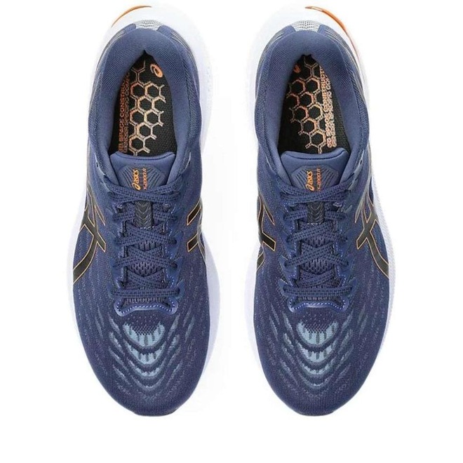 SobrepronaçãoTipo de péArcos baixos ou pés chatosEmpurreO dedão e o segundo dedo do pé fazem a maior parte do trabalho.Lesões consideradasCanelite, fasceíte plantar, joanetes, esporão de calcanhar.Como seu pé entra em contato com o chãoO pé pousa na parte externa do calcanhar e depois rola para dentro (prona) excessivamente, transferindo o peso para a borda interna em vez de para a planta do pé.DetalhesO tênis GT-2000? 11 é um tênis de estabilidade versátil e funcional para diversas distâncias. Atualizamos o amortecimento sob os pés para torná-lo mais confortável e energético.Os principais ajustes na entressola incluem nosso amortecimento FF BLAST?. Este material macio ajuda a promover aterrissagens mais suaves e um rebote responsivo.A tecnologia LITETRUSS? está posicionada na parte interna da entressola para melhorar a estabilidade. Ajuda a evitar que o pé role muito para dentro, preparando você para uma passada mais suave.Estilo nº: 1011B441Tecnologia e MateriaisParte superior em malha jacquardOferece um apoio para os pés confortável e de suportePelo menos 50% do material principal da parte superior do calçado é feito com conteúdo reciclado para uzir resíduos e emissões de carbonoA palmilha é produzida com o processo de tingimento em solução que uz o uso de água em aproximadamente 33% e as emissões de carbono em aproximadamente 45% em comparação com a tecnologia de tingimento convencionalTecnologia GEL? no retropéMelhora a absorção do impacto e cria uma sensação mais suave ao pisarTecnologia FFBLAST?O amortecimento proporciona amortecimento leve e um rebote responsivoTecnologia FLYTEFOAM?O amortecimento ajuda a manter o calçado leveTecnologia LITETRUSS?Melhora o suporte medial e a integridade do meio do péPalmilha OrthoLite? X-30Proporciona conforto suave ao entrarTampão de calcanhar AHARPLUS?A borracha ajuda a melhorar a durabilidadeA borracha ASICS LITE é mais leve e mais resistente do que as borrachas de sola padrão. A nanofibra de celulose de base biológica também é parcialmente utilizadaDetalhes reflexivosProjetado para melhorar a visibilidade em ambientes com pouca luzref: M11TPB