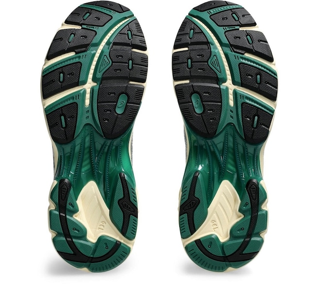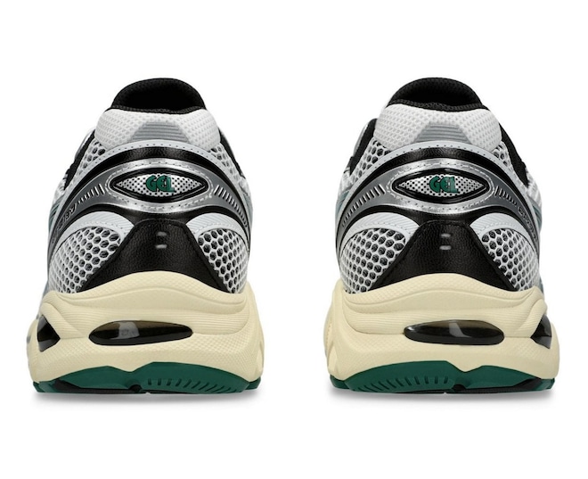 Outros detalhes influentes da década de 2010 incluem uma estrutura de entressola segmentada e inserções com tecnologia GEL™. Essa combinação cria uma estética industrial aliada a propriedades avançadas de amortecimento.